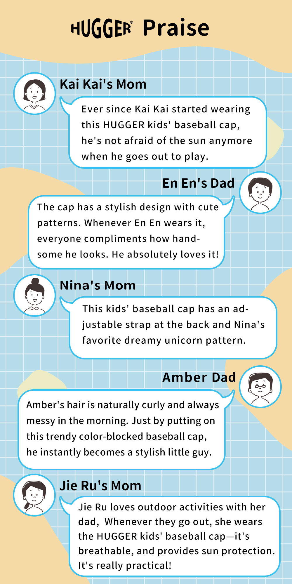 The kids baseball hat is made of high quality cotton fabric, which is soft and comfortable, and ventilated, suitable for all weathers and environments.
