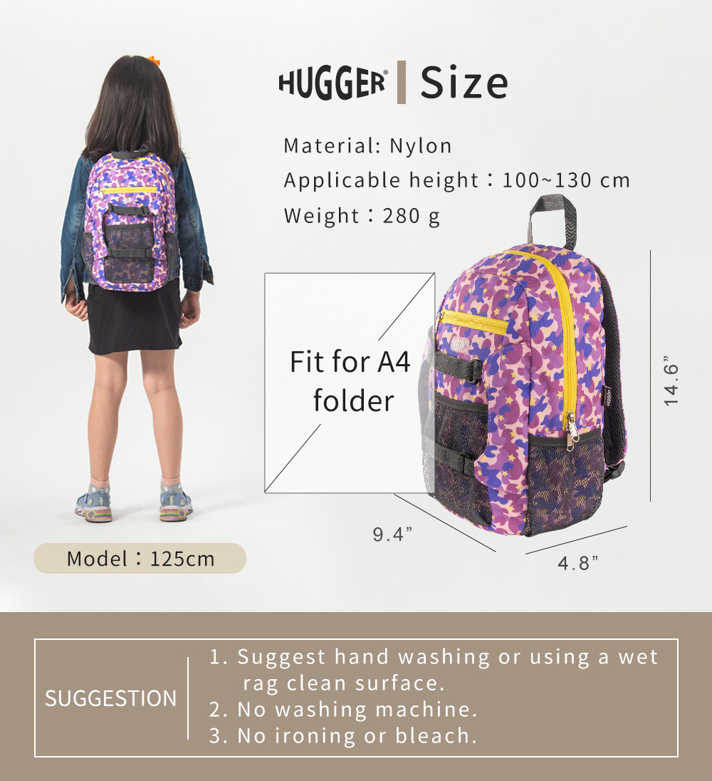 • Perfect size for little traveler and student. It fit for A4 size books, and with high-grade mesh water bottle pockets on both sides.