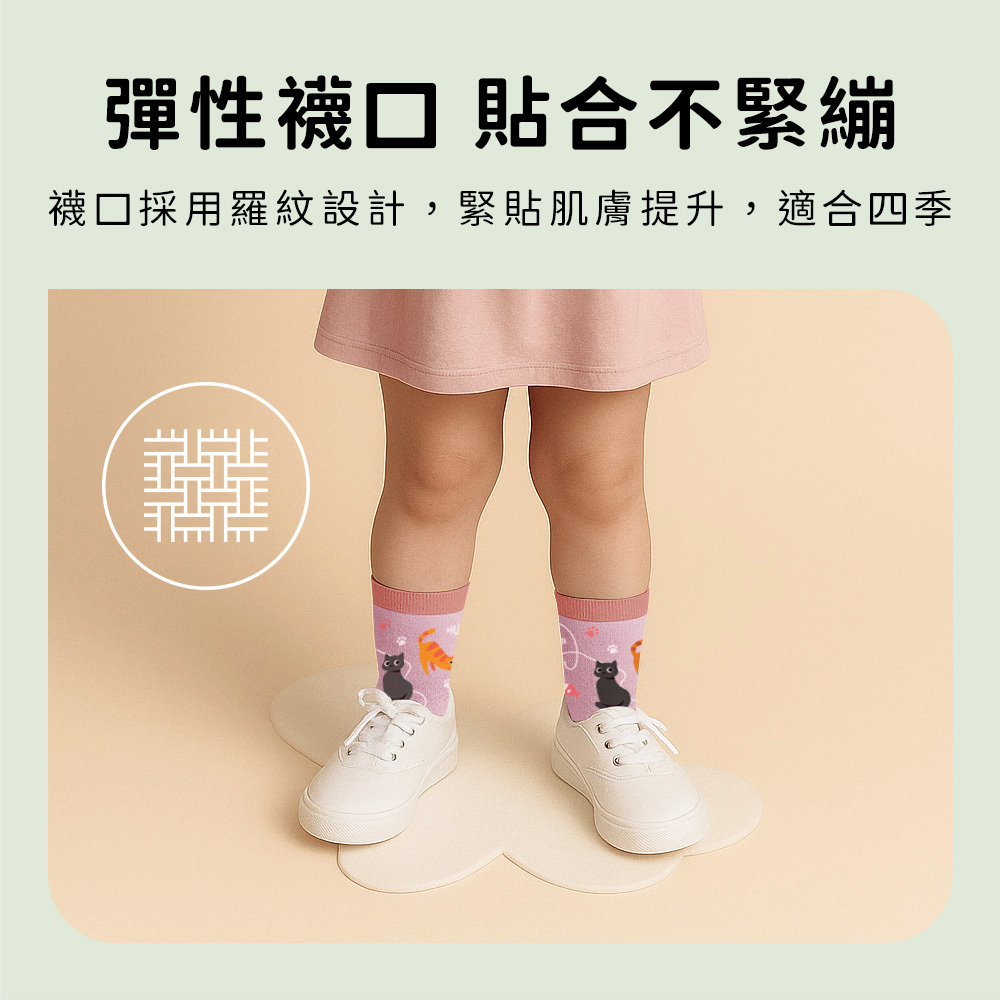 | 款式/型號 | 舒適中筒兒童襪-貓咪/HSK-3012 |