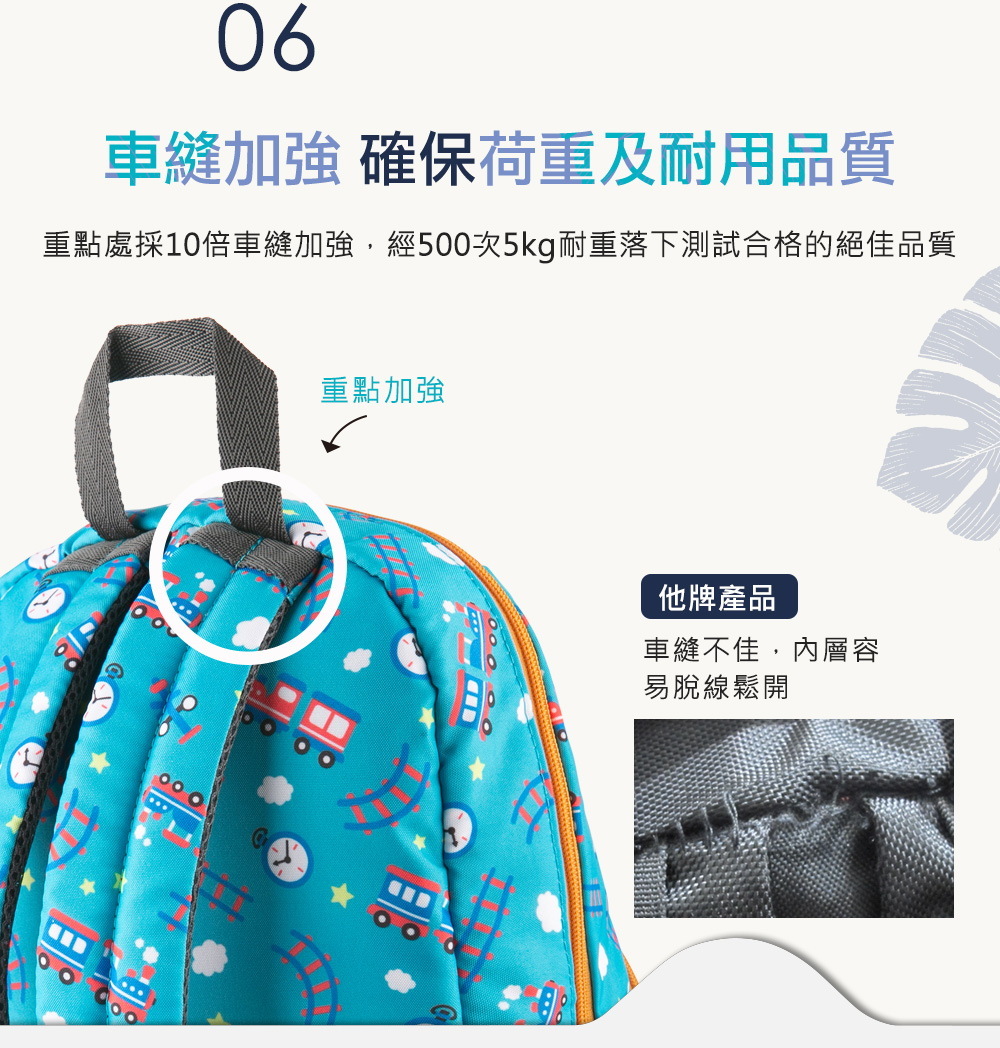 | 特點 | 正面及肩帶兩側反光條、內層姓名布條、防潑水面料、肩帶緩衝減壓棉 |